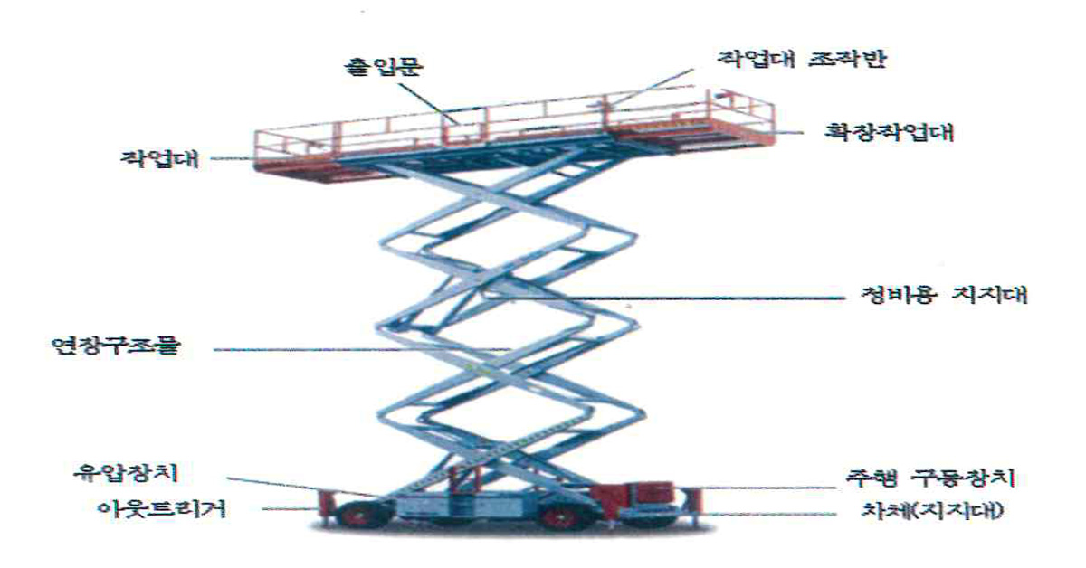 - 작업대 탑승 시 안전대 착용 및 외부 안전대 부착설비 등에 체결 후 작업